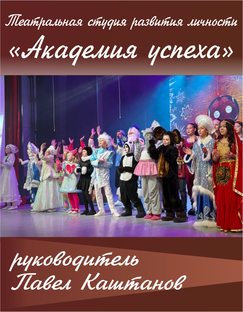 В сентябре 2017 года по инициативе директора МАУ «Концертно-театральное объединение» Аблякимова Сергея Шаифовича была создана театральная студия развития личности «Академия успеха». Руководителем студии стал Каштанов Павел Валентинович. Воспитанники студии изучают хореографию, вокал, сценическую речь, сценическое мастерство и пластику. В студии занимаются более 50 человек. Участники студии принимают активное участие в городских концертах, детских игровых программах, выездных мероприятиях.