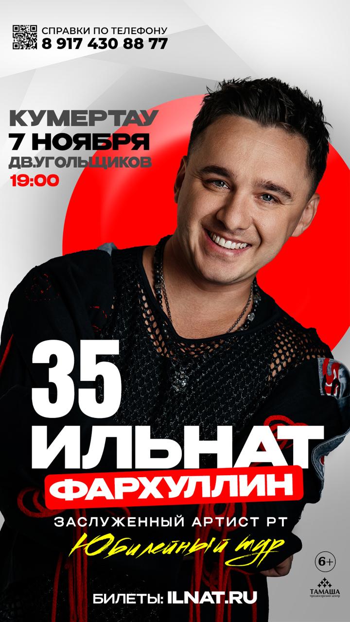 Заслуженный артист Республики Татарстан Ильнар Фархуллин приглашает жителей Кумертау и гостей города на свой концерт в рамках юбилейного тура.