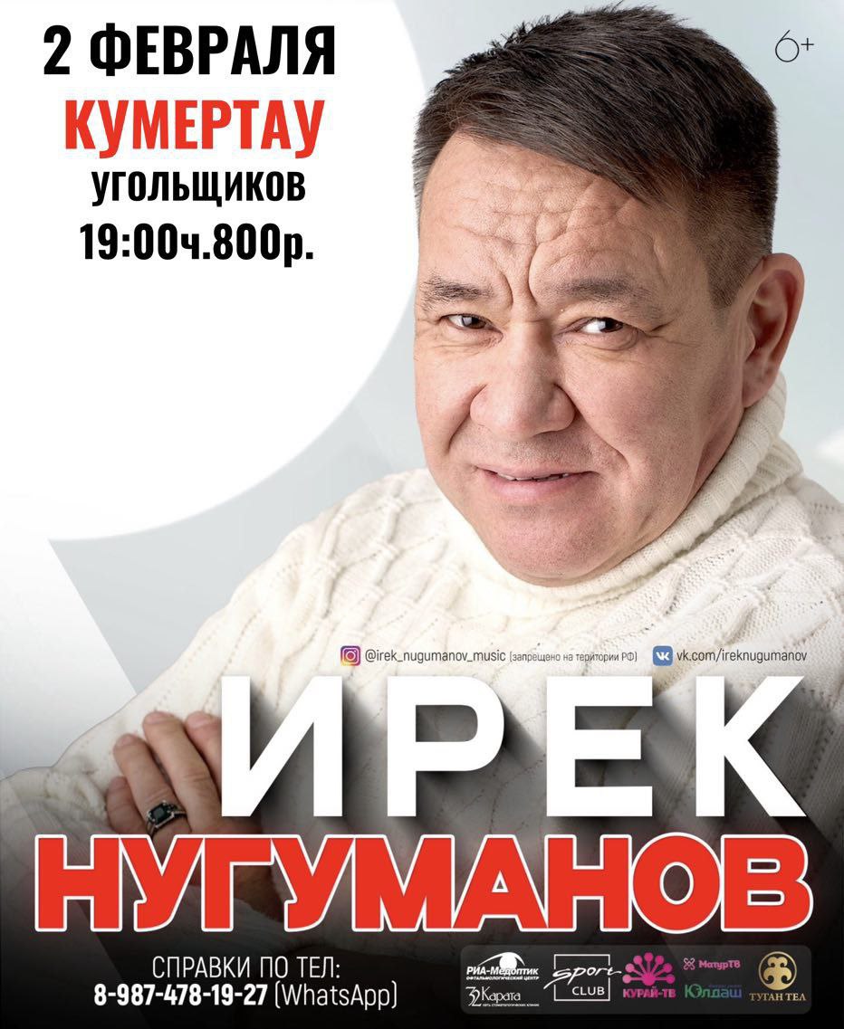 2 февраля Ирек Нугуманов приглашает на свой концерт в ДК «Угольщиков» (г. Кумертау). Начало в 19:00 часов.