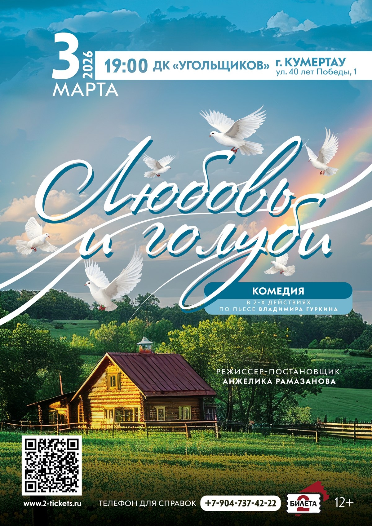 «Любовь и голуби» — проверенная временем, светлая, наивная история о не проходящей любви, родном доме и живущих лишь по велению сердца людях. Спектакль, рождающий в душе пусть крохотную, но надежду смотреть на жизнь с оптимизмом. Легендарный спектакль – одна из самых увлекательных историй о любви, основанная на пьесе Владимира Гуркина. Это произведение не нуждается в дополнительных пояснениях или похвалах. Имена его героев стали символами, а остроумные фразы, насыщенные тонким юмором, превратились в афоризмы. Комедия в 2-х действиях по пьесе Владимира Гуркина Не упустите возможность увидеть эту замечательную постановку!  03 марта 2026