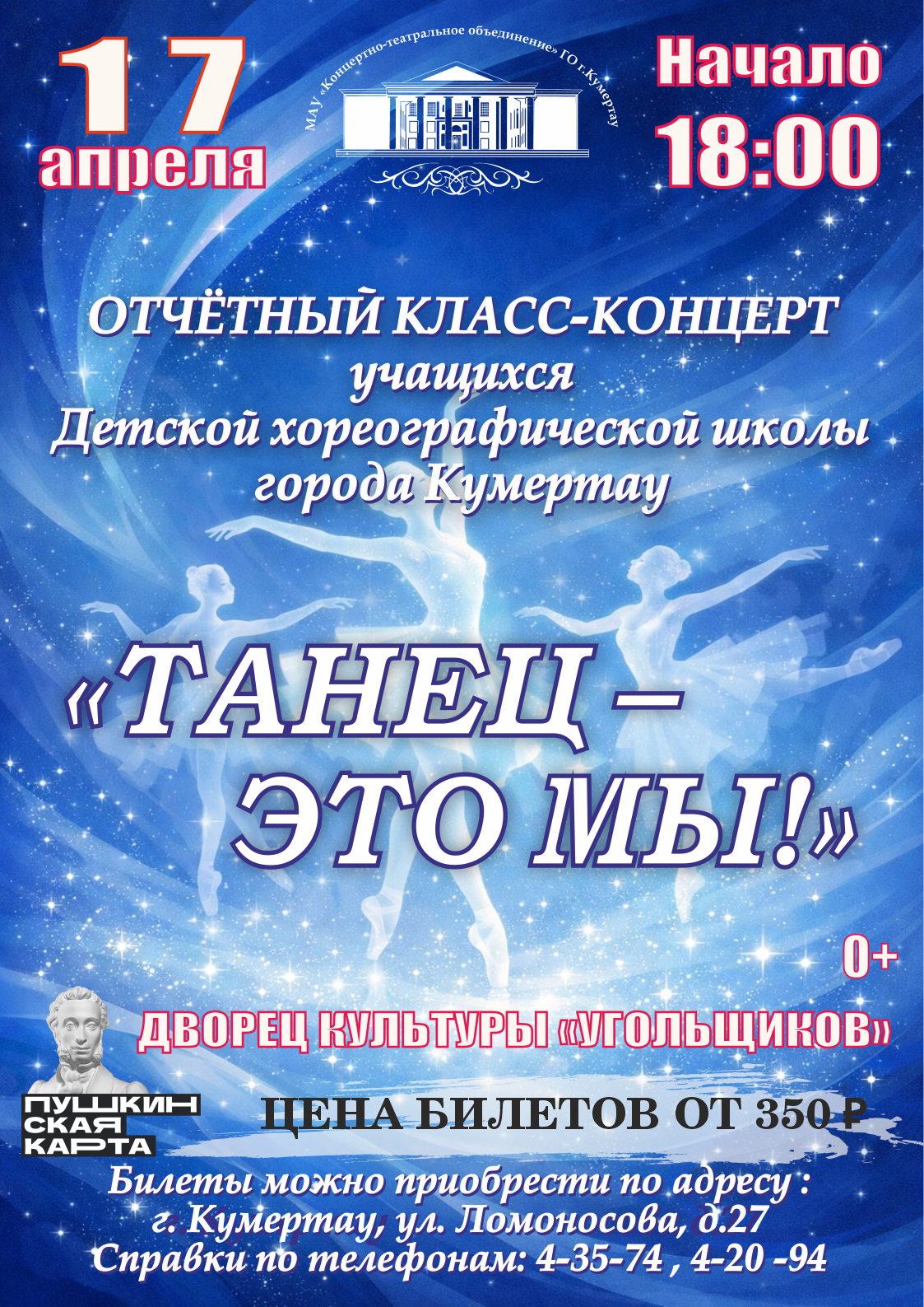 Детская хореографическая школа города Кумертау приглашает всех ценителей прекрасного на свой отчетный концерт «Танец – это мы».