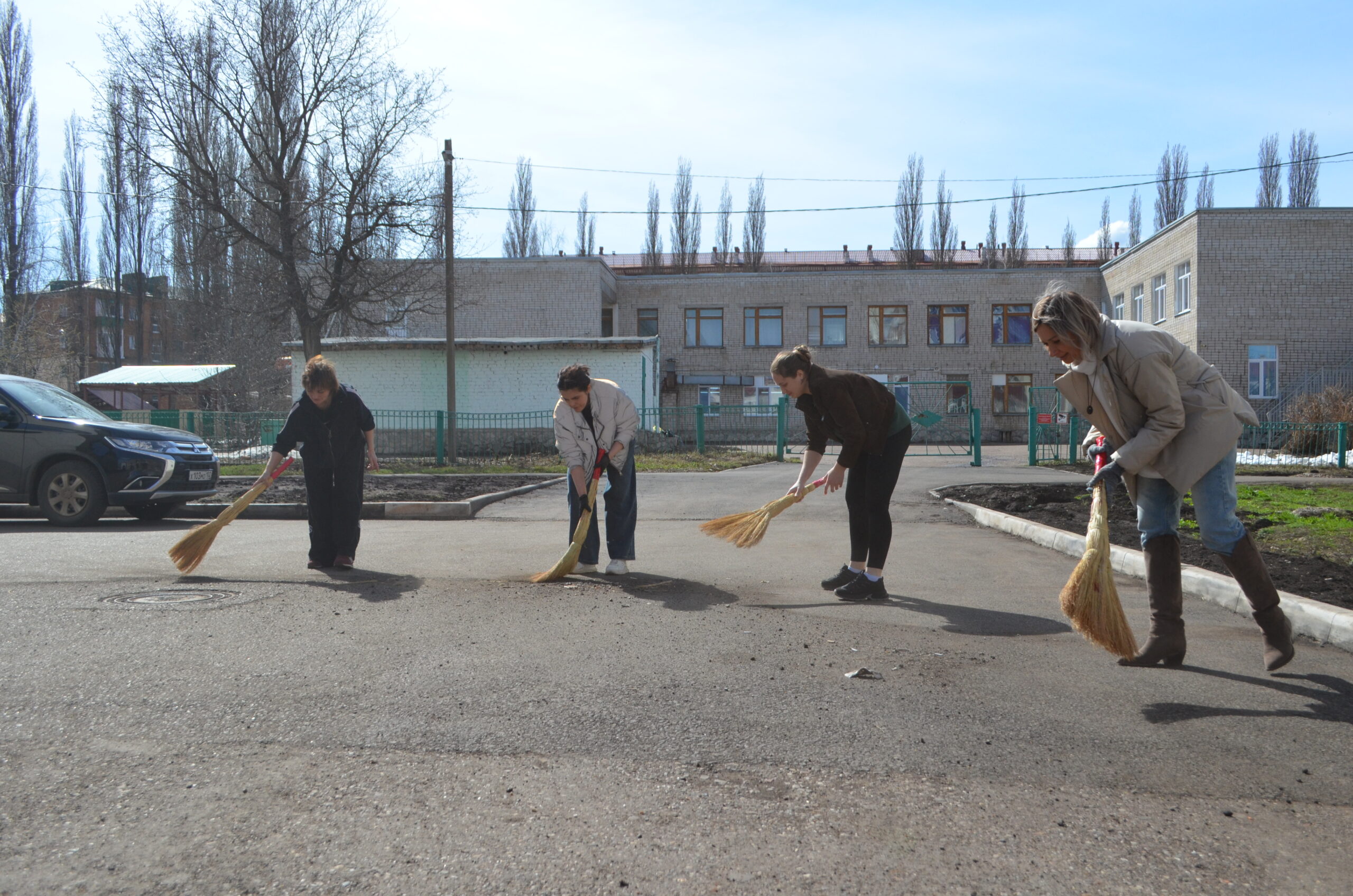 На этот раз особое внимание коллектив Концертно-театрального объединения уделил территории Дома культуры «Рассвет»: пространство обширное, центр города, в минувшем году здесь проводились работы по благоустройству в рамках программы «Комфортная городская среда». Мы подмели здесь, убрали последний зимний мусор, прокрасили бордюры.
